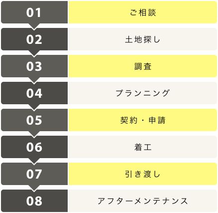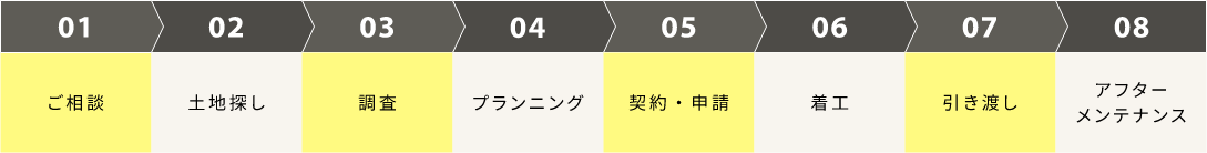 家づくりの基本的な進め方です。お客様のご依頼に沿って、柔軟に対応させていただきます。